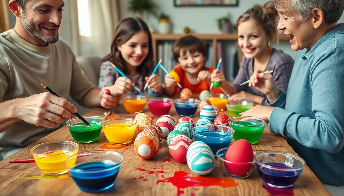 Experimenting with various dyeing techniques elevates the egg decoration process. Dipping eggs directly into prepared dye creates a classic, uniform color. Use a spoon for more control and layered effects by dipping sections of eggs into different colors. Applying rubber bands allows for unique patterns, as undyed sections remain exposed. Splatter dyeing adds a playful touch; gently flick brushes with dye onto eggs for a speckled appearance. Utilizing wax crayons before dyeing creates design resist patterns, emphasizing creativity. Each technique results in stunning eggs that display individuality and fun.